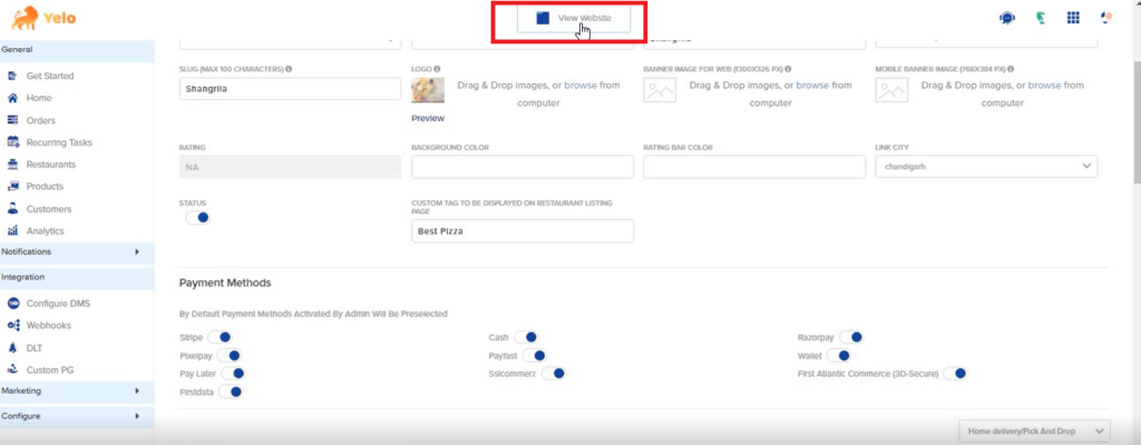 - Once the details get saved, click on the “View Website” button on the upper-middle section of your screen.