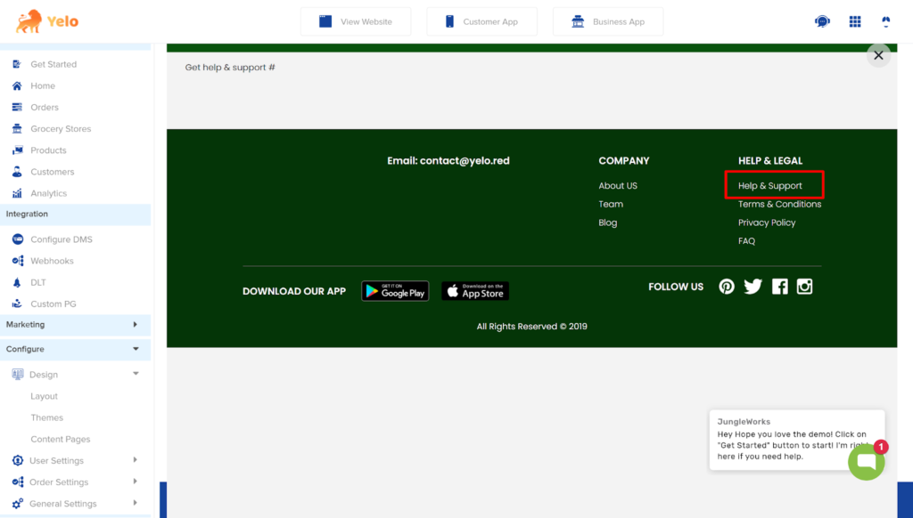 Easy addition of content pages on a marketplace website with Yelo gives you the flexibility to update content whenever you want. You can do it simply by adding a title, description, and route for the content page.